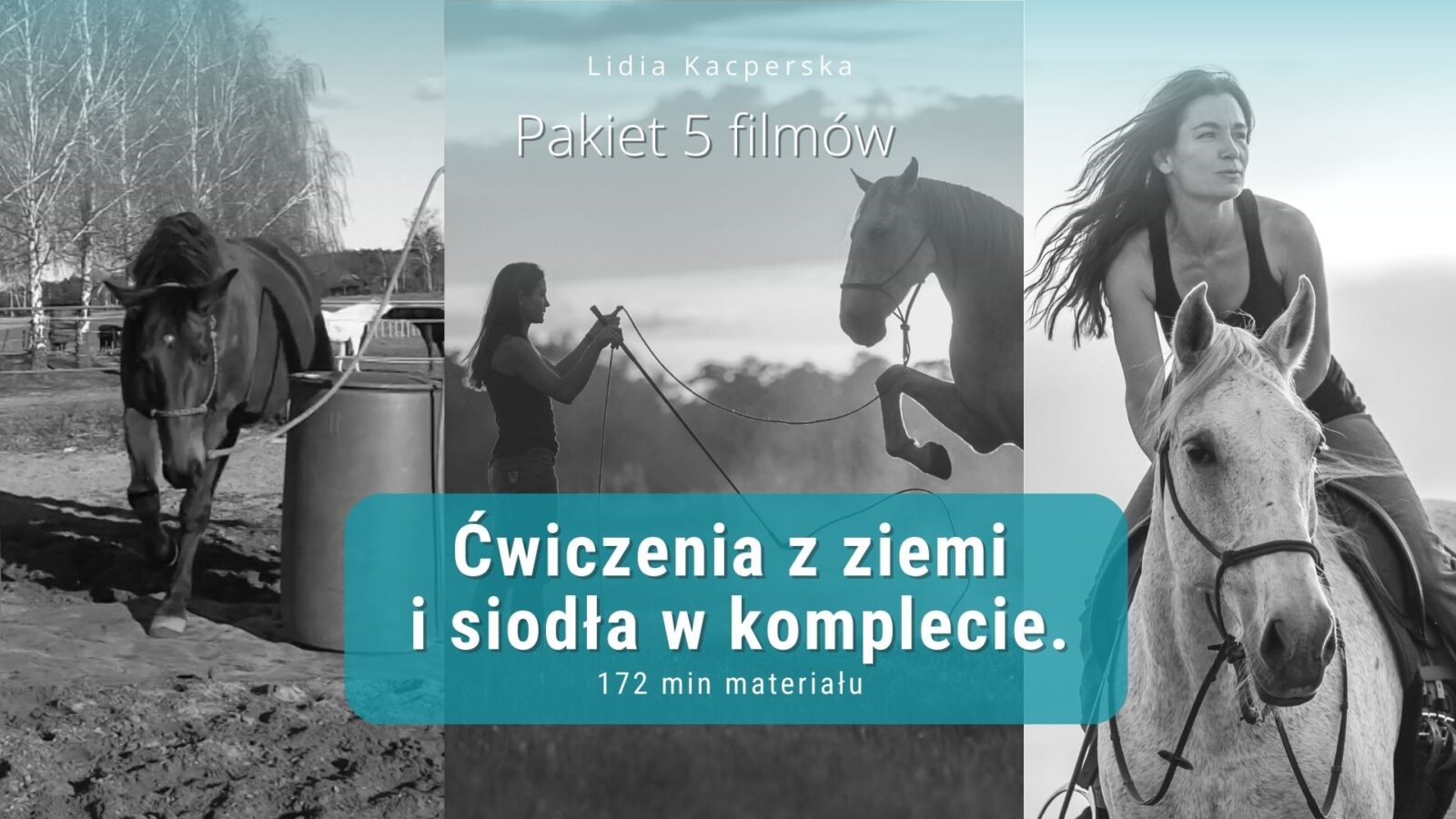 Dostęp do 5 filmów: "Ćwiczenia z ziemi. Zestaw 23 elementów", "Zaawansowane ćwiczenia z ziemi cz.2. Chody boczne i schematy gimnastyczne", "Ćwiczenia z siodła. Od czego krok po kroku powinniśmy rozpocząć pracę z koniem z siodła", "Jak prawidłowo dobrać halter", "Najczęstsze błędy popełniane przy pracy z ziemi".